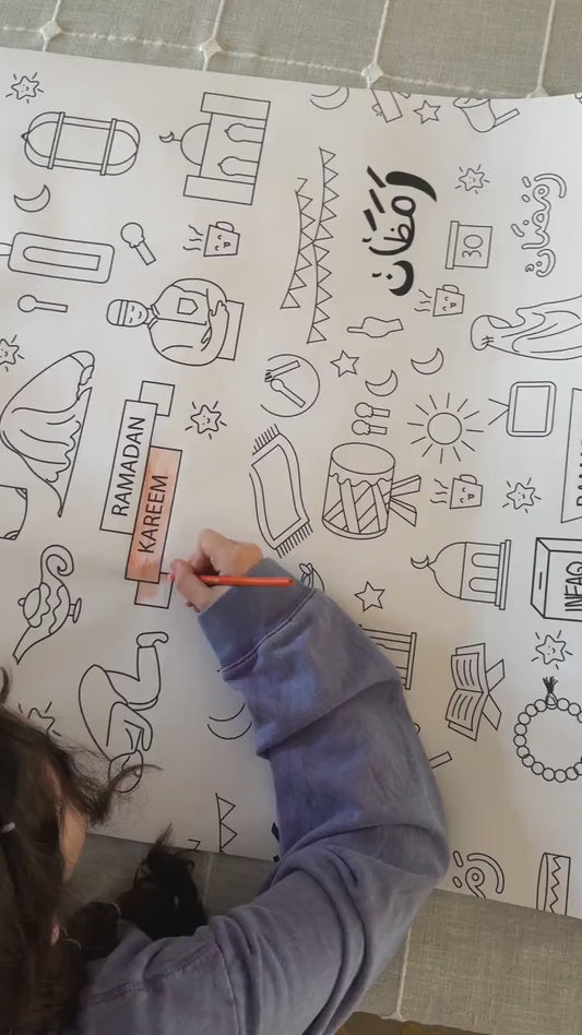 Color your own Ramadan table cover, Giant coloring table runner for kids, coloring poster for Ramadan, Ramadan Decoration Kids Activity