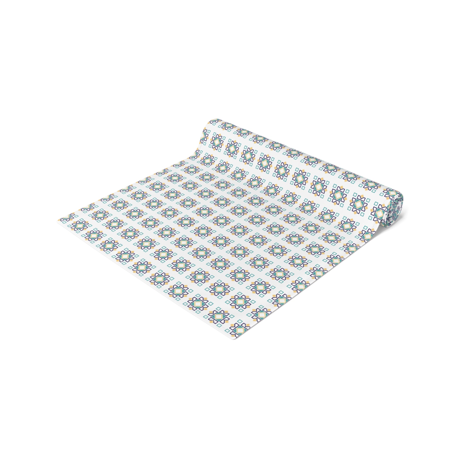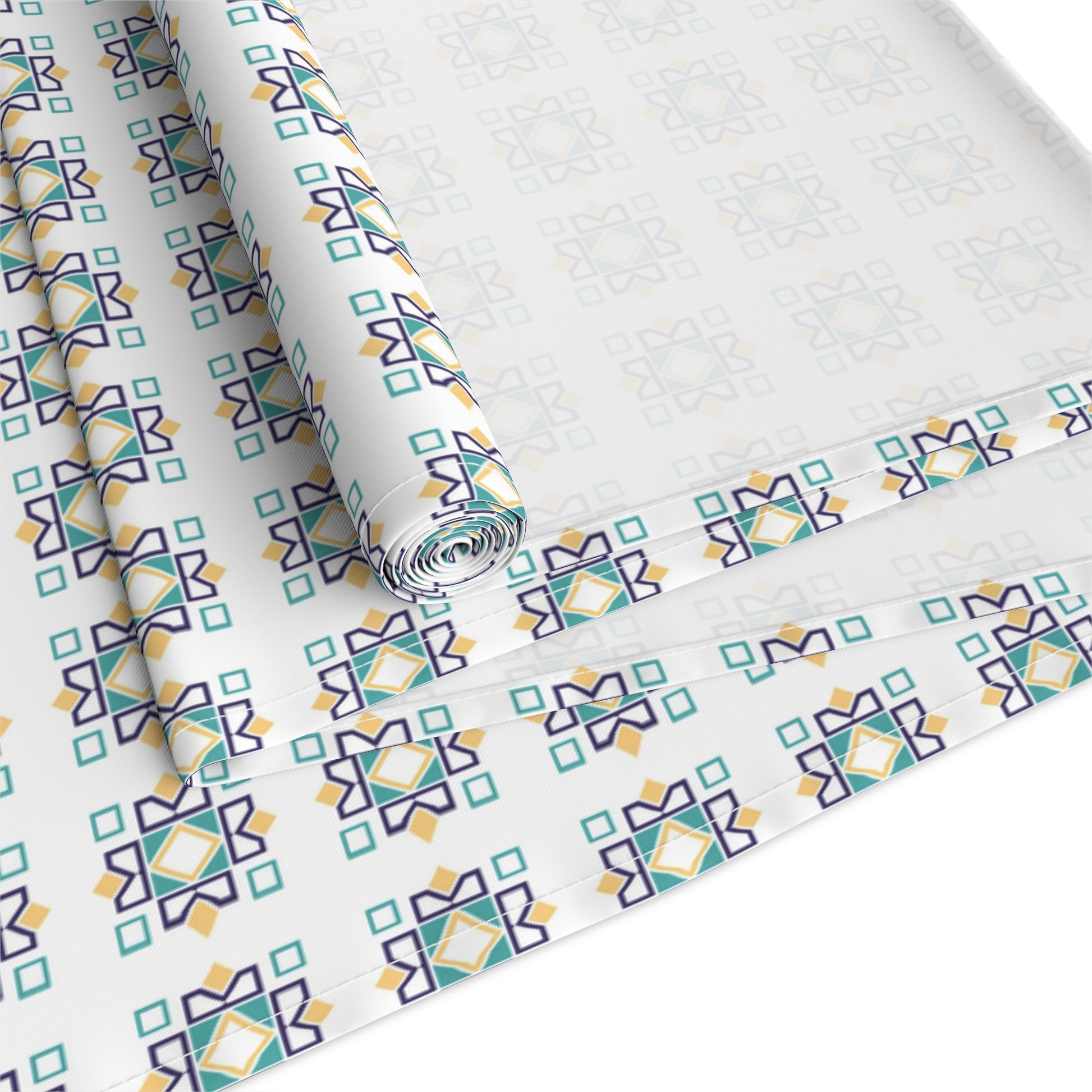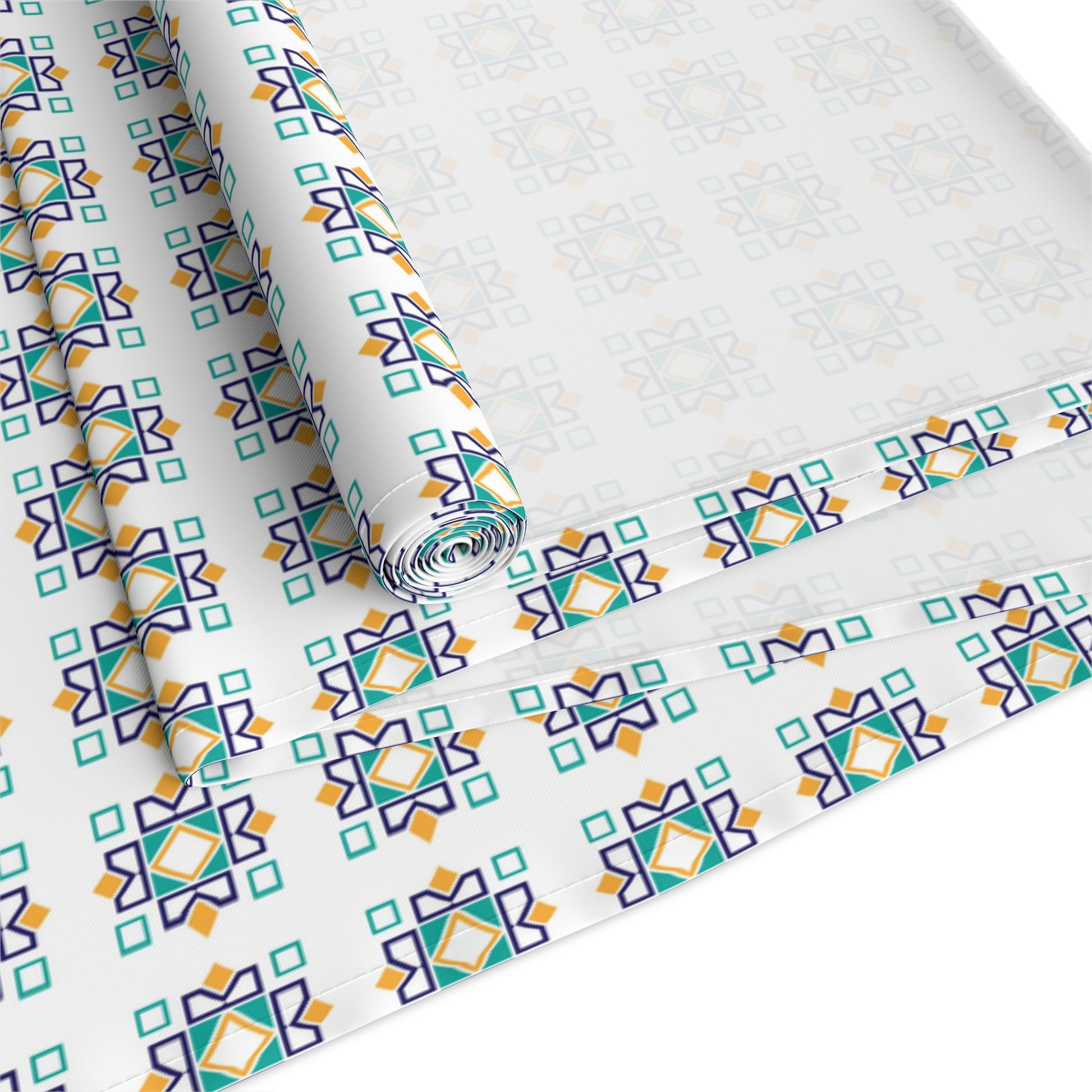 A Moroccan art table runner printed design that adds a touch of exotic elegance to your dining table. Perfect for those who love cultural decor and want to elevate their dining experience. Ideal for special occasions like dinner parties, holidays, and celebrations.