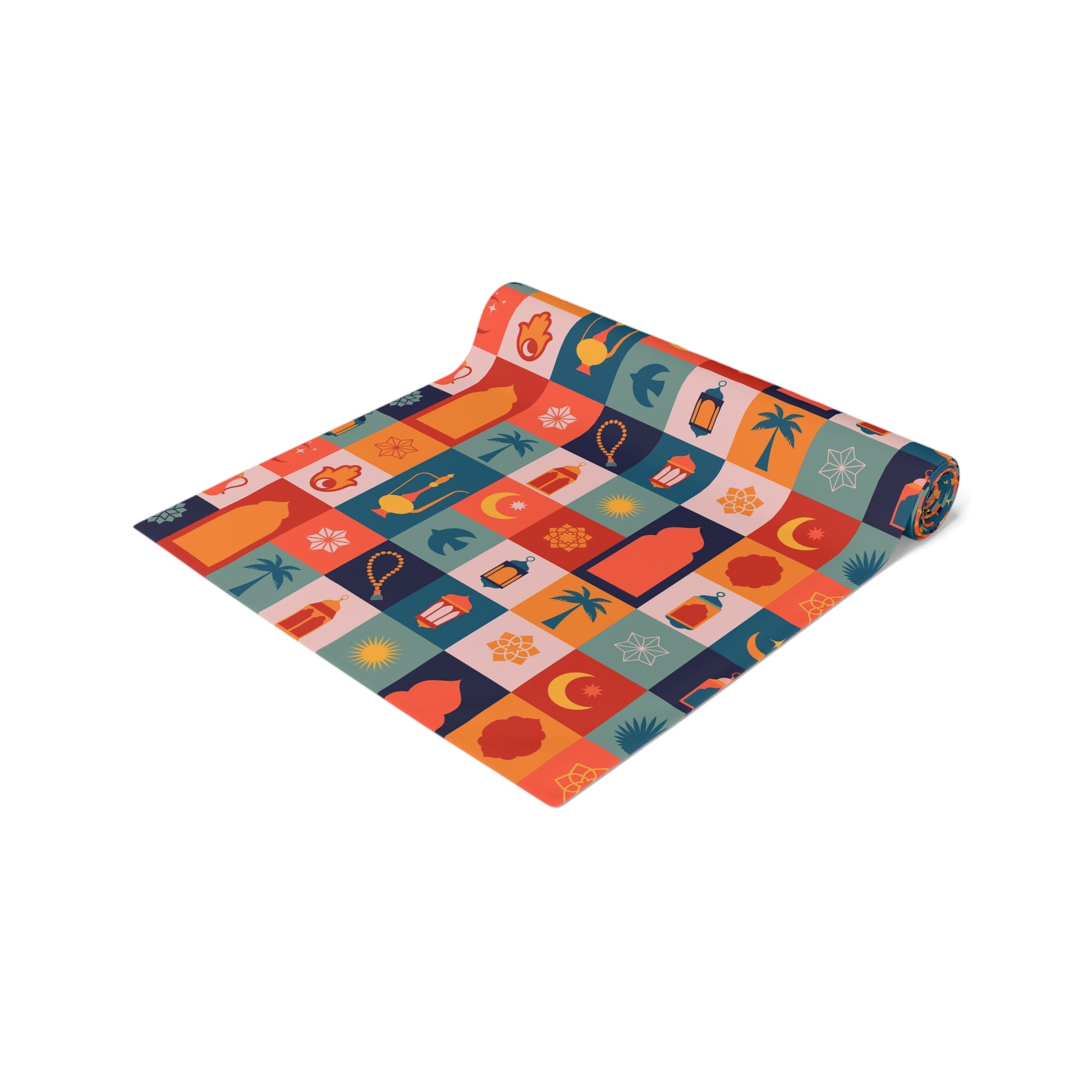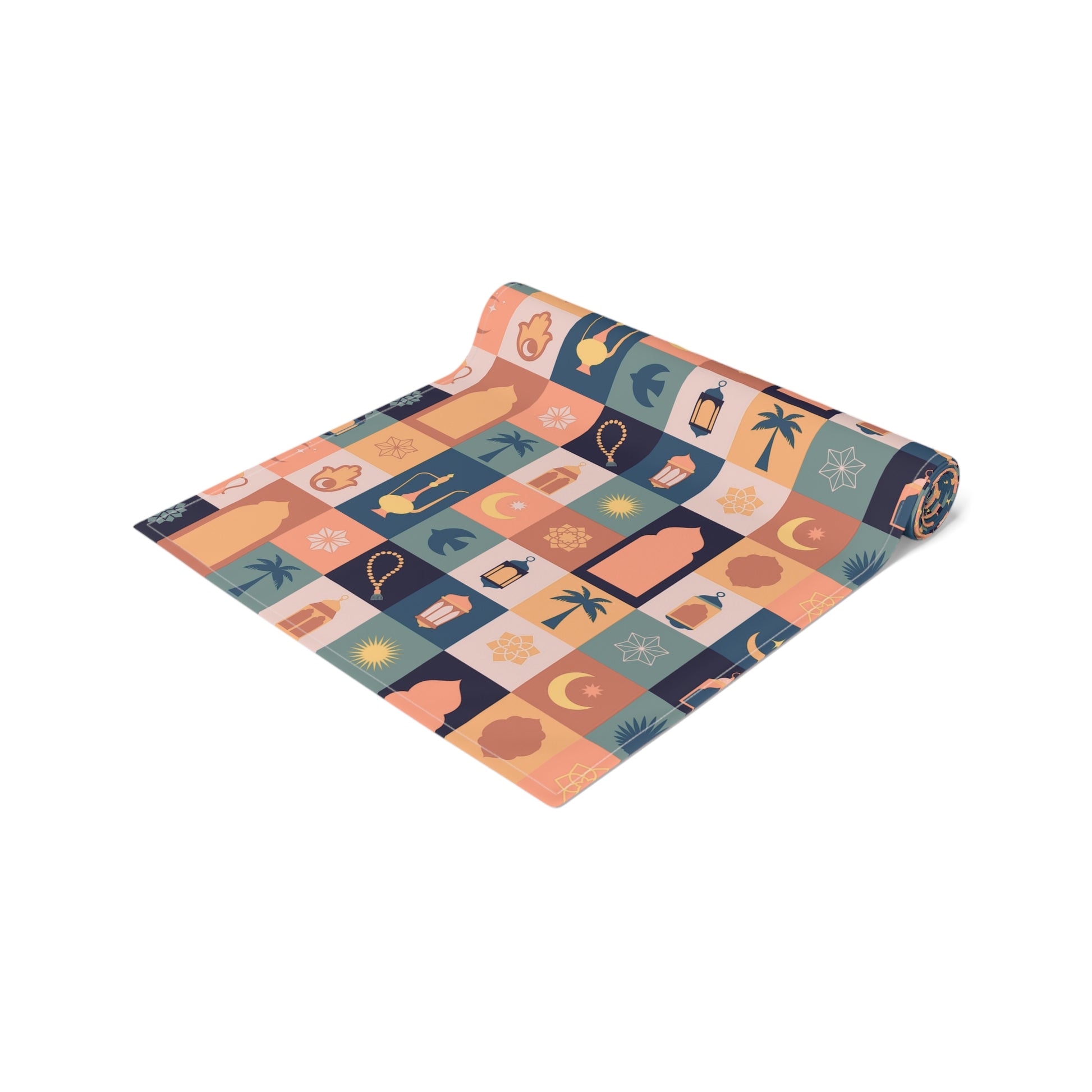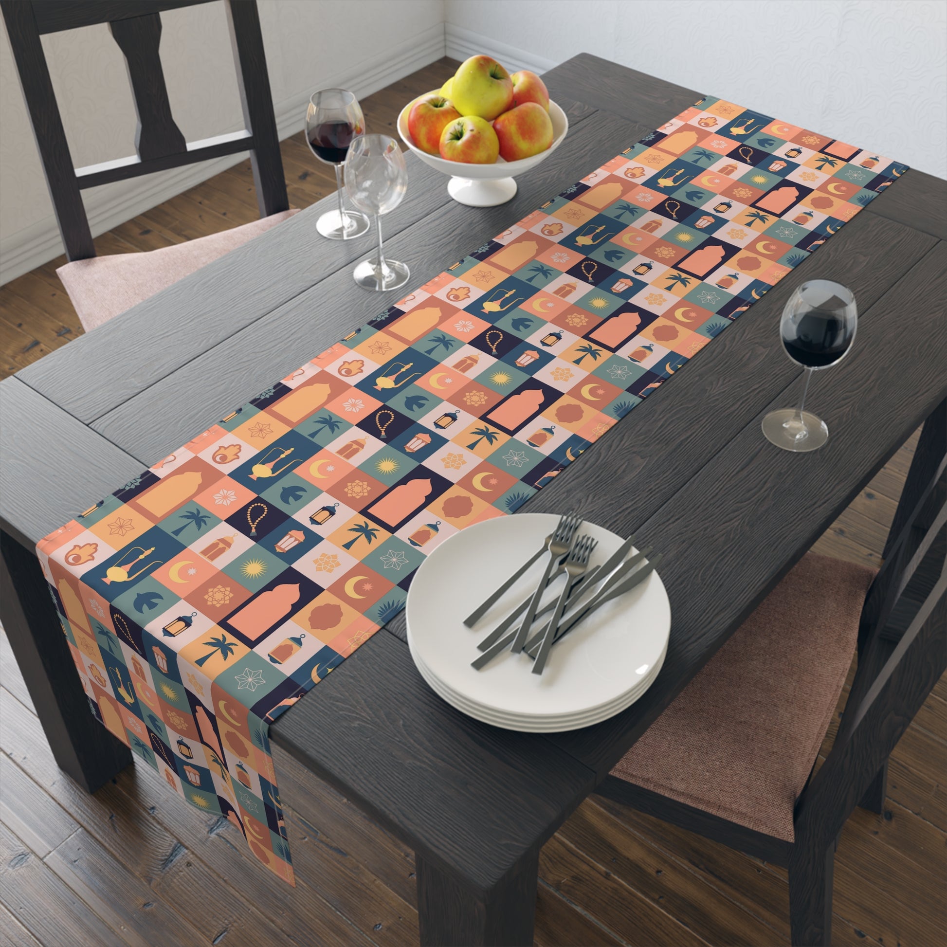 This Ramadan table runner exudes a festive and traditional vibe, perfect for adding a touch of cultural charm to your dining table during Ramadan celebrations. Ideal for those looking to enhance their dining experience with a cultural touch.