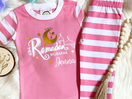 Personalized Ramadan mubarak kids pjs ramadan pj ramadan for kids SHORT SLEEVED ramadan/eid pajamas